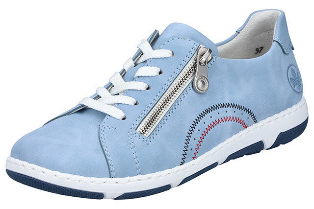Die folgen dir auf Schritt und Tritt! Mit diesen blauen Rieker Schnürschuhen für Damen bist du cool und lässig auf Achse. Der Schuh ist in der Anflechter-Machart gefertigt, was ihn besonders robust und flexibel macht. Neben der Schnürung ist das Modell auch mit einem Reißverschluss versehen und sorgt so für bestmöglichen Halt. Die runden Ziernähte setzen lässige Akzente. Mit der griffigen Sohle ist trittsicheres Gehen eine Selbstverständlichkeit. Die gepolsterte und herausnehmbare Einlegesohle bietet Komfort und Funktionalität für jeden Tag. Das Modell ist in Extraweite H geschnitten. 100% Lieblingsschuh-Potential!
