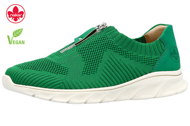 100% vegan! Diese grünen Rieker Sneaker für Damen sind der perfekte Begleiter für jeden Anlass. Der Reissverschluss sorgt für schnelles An- und Ausziehen. Mit der ultra leichten und flexiblen Sohle werden deine Füße bei jedem Schritt verwöhnt. Die Sneaker haben eine gepolsterte und herausnehmbare Einlegesohle, die wie Urlaub für die Füße ist! Trageluxus pur!