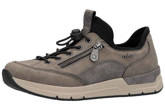 Mit diesen alltagstauglichen Rieker Sneaker für Damen bist du mit maximalem Komfort und ultimativem Style unterwegs. Das Schnellschnürsystem erleichtert das An- und Ausziehen besonders. Ein schöner Eyecatcher ist die neutrale und zugleich interessante Farb- und Materialkombi sowie der seitliche Zier-Reißverschluß. Die griffige Sohle gibt guten Halt auf Schritt und Tritt. Modisches Wohlgefühl im Stil von Rieker!