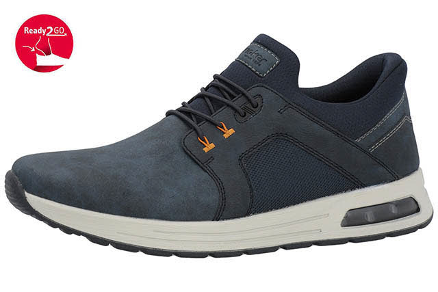 Dream-Team - Style und Comfort! Mit diesem blauen Rieker Slipper für Herren bist du immer gut angezogen und kannst dich auf maximalen Komfort verlassen. Neben dem Gummizug ist das Modell mit einem elastischen Schaftrand versehen, was das Anziehen zweifach erleichtert. Die leichte und schockabsorbierende Sohle verwöhnt die Füße darüber hinaus bei jedem Schritt. Dank der gepolsterten und herausnehmbaren Einlegesohle ist bester Komfort gegeben. Durch die Komfortweite G ist dir mehr Freiraum im Schuh geboten. Das Rieker Air Fenster im hinteren Sohlenteil dämpft Schritte ab, während die Ready2GO Funktion sekundenschnelles Hineinschlüpfen garantiert. Einfach hineinschlüpfen und los!