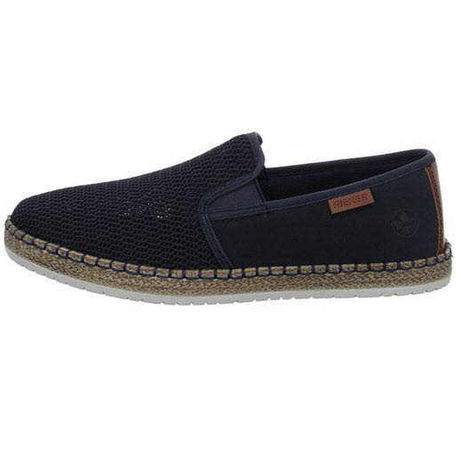 Hineinschlüpfen und wohlfühlen mit Rieker! Diese dunkelblauen Rieker Slipper für Herren sind perfekt geeignet für jeden Tag. Der Elastikeinsatz stellt zudem sicher, dass der Schuh jederzeit sitzt. Die Ziernähte an der Sohle sind schöne Hingucker. Die schockabsorbierende und leichte Sohle bietet anhaltendes Wohlgefühl ? auch an langen Tagen. Zudem sorgt die extra weiche Decksohle für eine Extraportion Tragekomfort. Die Komfortweite G 1/2 bietet den Zehen genügend Bewegungsfreiheit. Trageluxus pur!