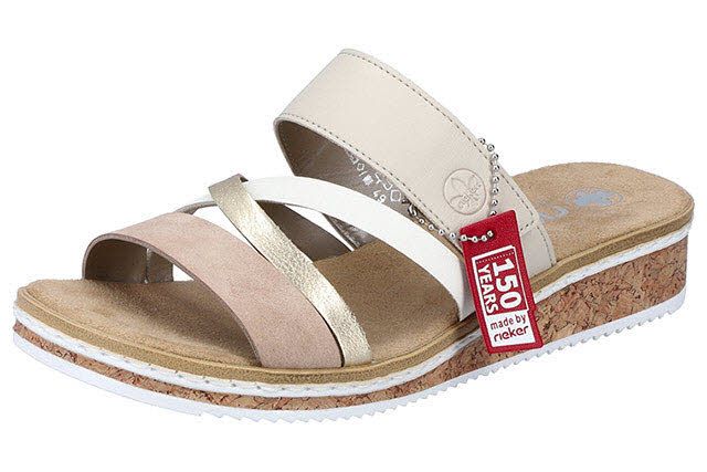 Rieker Damen Pantoletten beige-metallic-rosé