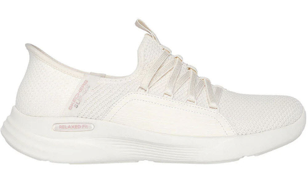 Step into stylish comfort with Skechers Hands Free Slip-ins®: Relaxed Fit® Sport - Ballet Chic. Featuring a mesh bungee-laced upper, our exclusive Heel Pillow™, and a cushioned Skechers Air-Cooled Memory Foam® insole.
