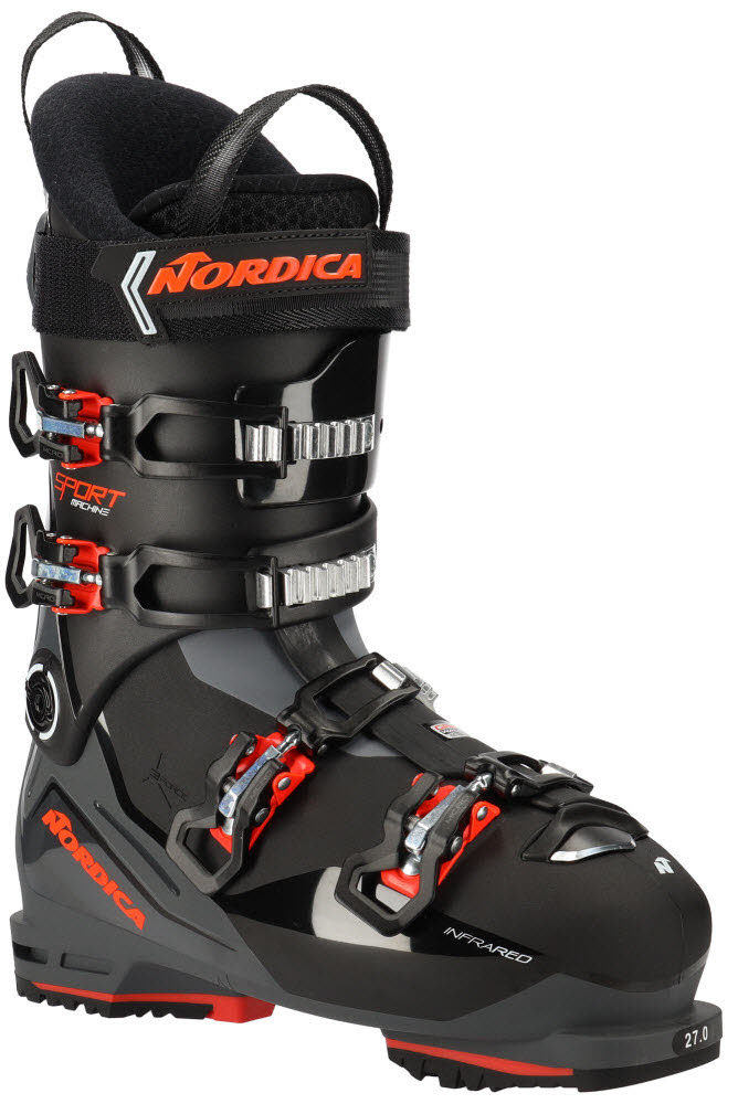 Leistungsstark und doch sehr bequem sind die Nordica Skischuhe SPORTMACHINE 3 100 GW. Die Schuhe aus der Sportmachine Reihe haben ein breiteres Skelett und einen verstellbaren Schuhschaft. Selbst wenn Du den ganzen Tag auf der Piste bist, werden die Schuhe nicht drücken. Das Skelett wird mit Hilfe der InfraRed Technologie angepasst und die Innenschuhe wurden mit Primaloft isoliert.
